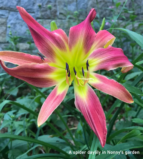 DAYLILIES are an important part of the Upstate New York flower garden. One variety has naturalized to grow wild in large beds in the culverts along the country roads of Keuka Bluff. We have three beds of them. At TAProots farm, a very hardy variety occupies beds on both sides of the drive to the door to the basement. The clumps are rather large but have not yet occupied the entire bed, along with some Russian sage, Rudbeckia, and butterfly bush. At the Lakehouse, we have two beds, one by the side of Westbluff Drive, where our driveway goes up the hill. This is a dry, windy spot so they need lots of leaf mulch. The second bed is Nonny’s garden next to the house. There, we have planted several varieties purchased last summer from the Daylily breeder’s sale over on Seneca Lake. They had hundreds of varieties that got established last summer and give us flowers now. They bloom from July to early August and add rich maroon and bronze colors as well as different types of blossoms including spider varieties. Daylilies add much to the summer garden and have amazing hardiness in the cold winters and dry summers of Upstate New York.