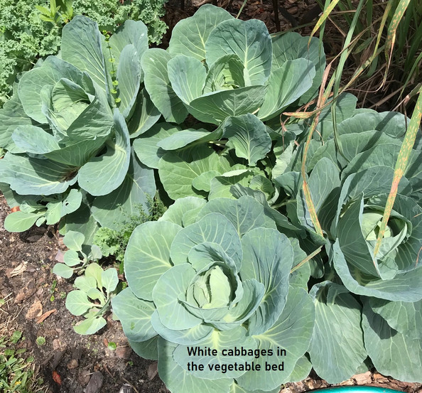 Winter in Florida is surprisingly the best time for lettuce and other green leafy vegetables. The Farmers Markets are full of all sorts of varieties for our salad bowl. Their availability continues until April or so, when the hot weather makes everything bolt and die off. Our Florida garden has a tiny (3x7 feet) plot next to the house near my gardening closet. This space has a direct exposure to the south and west, so it is hot and dry except for the winter months. I have tried to grow many things in this spot, including leaf lettuce, arugula, cilantro, zinnias, etc., all with poor results. I wonder if the soil carries a high level of nematodes or other root-killing pests. Other problems include rabbits and deer, which love the seedlings and tender buds. After years of trying, it appears that I can reliably grow only two edible crops: CABBAGE and BOK CHOY. Both of these somehow can stand some frost and some heat. My neighbor keeps me supplied with baby bok choy, and I will pick up a pack of white cabbage seedlings at the Farmers Market. This year I am trying a red bok choy to add a bit of color to the bed. Fresh greens for a sauté’ or a coleslaw are always welcome on the winter menu.