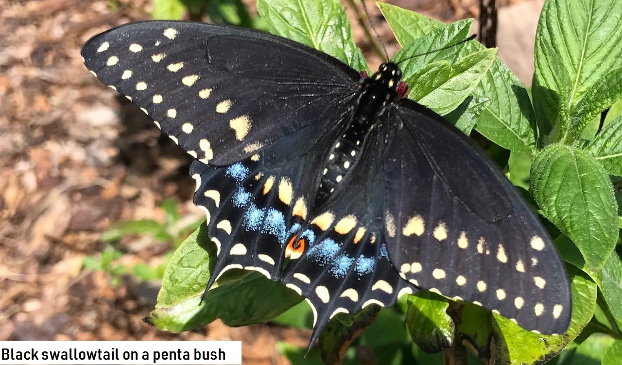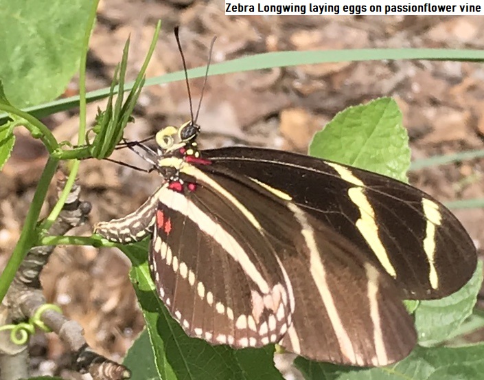Gainesville, Florida touts itself as the “Butterfly Capital of the US.” They might be right, and many of the plantings in the Florida Home’s garden have one of two purposes: Provide pollen to the pollinators (butterflies, bees, hummingbirds) or serve as host plants for the eggs and caterpillars of the huge numbers of butterfly species. I am thankful I have a local expert; Joyce volunteers weekly at the Florida Museum of Natural History as a docent, which gives her access to their butterfly aviary and world class butterfly collection. Two beautiful and frequent visitors to our garden are the Zebra Longwing ( Florida’s State butterfly) with a white caterpillar and the Gulf Fritillary with an orange caterpillar, both of which eat the passionflower vines growing along the fence. We have several swallowtail butterfly species, the most common is the black swallowtail, which has as a host plant, parsley. On one occasion, we went to our herb garden for some herbs, only to find caterpillars! Solution: buy more parsley plants. Another huge family are the skippers, smaller but very active in the salvias next to the pool, where we can watch them while we swim. The plumbago there also attracts other species like the common buckeye. Butterflies certainly make the Florida garden special.