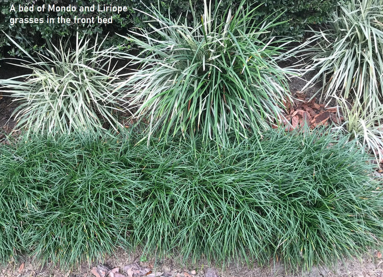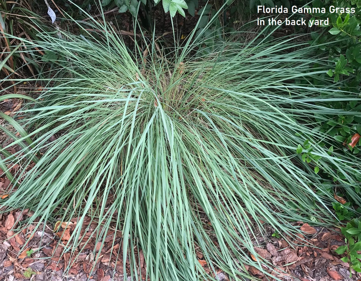 The early winter is a good time to enjoy the various kinds of GRASSES that are planted in our Florida Garden. Most are well suited for the hot and dry Florida summers. Of course we have quite a bit of lawn covered with St. Augustine grass which spreads with runners and is somewhat coarser that the soft lawns in the North. Our irrigation system and daily showers do a good job keeping it green and lush. Another grass-like plant is the Mondo grass which is perfect forbthe shadiest spots. Our neighbor Jack and I have planted a bare spot where nothing would grow between our driveways, each planting Mondo grass plugs until now it is nicely covered year-round. Another good shade grass is Liriope, which has both green and variegated strains. They line the walk to the front door and mix with the Mondo grass to cover the front beds. In the back yard, we have several clumps of Florida Gamma Grass, with long green blades and nice seed heads in the fall, for occupation of open spaces in the full sun. Finally, on the side bed by the figs, we have a stand of Purple Fountain Grass, with deep magenta leaves and stems 4-5 feet tall with graceful purple seed heads floating above the blades. The Gamma Grass and Fountain Grasses can proliferate rapidly and often need to be thinned. Another chore for late winter is to cut the grasses back, use the cut tops for hay, and wait for the new blades in the spring. Grasses add texture while withstanding the hot Florida summers as an essential part our Florida garden.